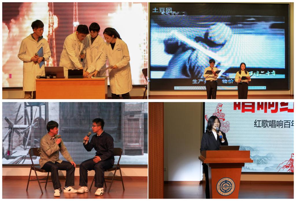 经过初赛和复赛的激烈角逐,共有十支队伍脱颖而出入围决赛,他们在40多天的备赛时间里认真查阅党史资料,仔细斟酌润色语言,不断打磨微课作品,力争为学院师生带来一场精彩的红色学习之旅。从冰雪冬奥到天下大同,从脱贫攻坚到两弹一星,从载人航天到为国深潜,十支决赛队伍借助情景小剧场、视频连线访谈等形式从不同角度阐述了他们对中国共产党、对革命前辈的高度认同和赞颂,生动诠释了作为新时代青年的责任和担当。