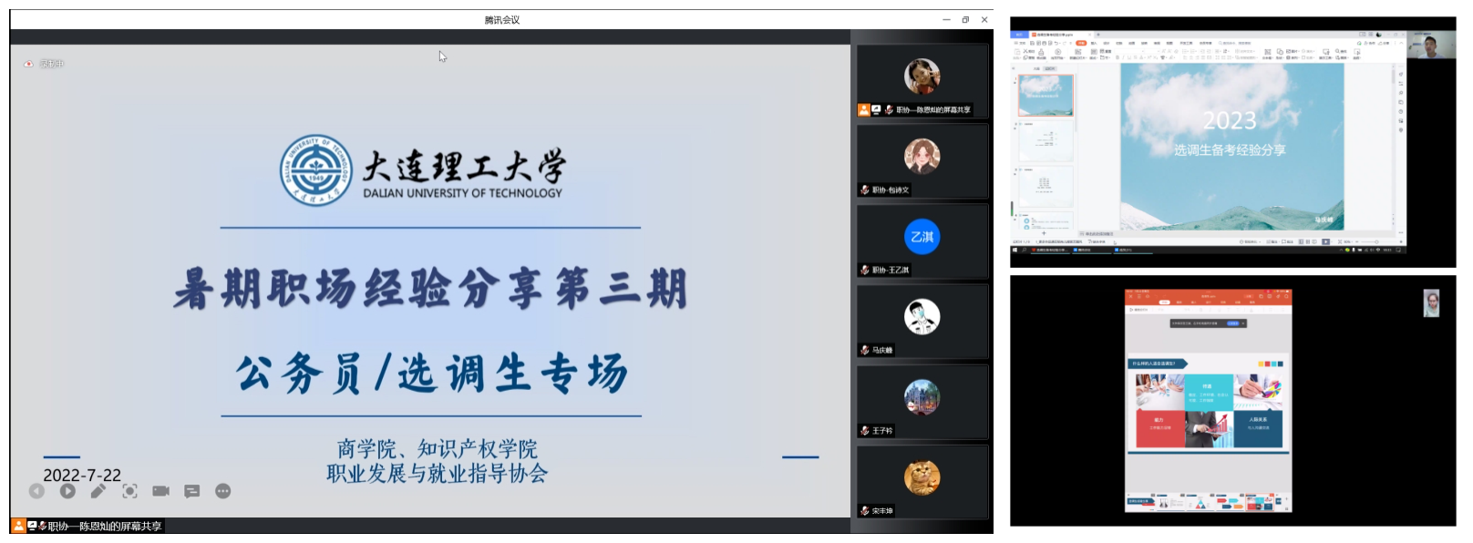 为进一步贯彻落实学院实践育人理念,帮助商知学子熟悉了解公务员/选调生的备考流程和申请企业实习的经验方法,亚博取款心丈秒到账、知识产权学院依托职业发展与就业指导协会,利用暑期和小学期先后举办了公务员/选调生备考经验分享会和暑期实习经验分享会,分别邀请已经在公务员/选调生岗位上工作一年的三位2021届毕业生校友和具有丰富暑期实习经历的13位同学进行分享,160余位商知学子参加分享会。